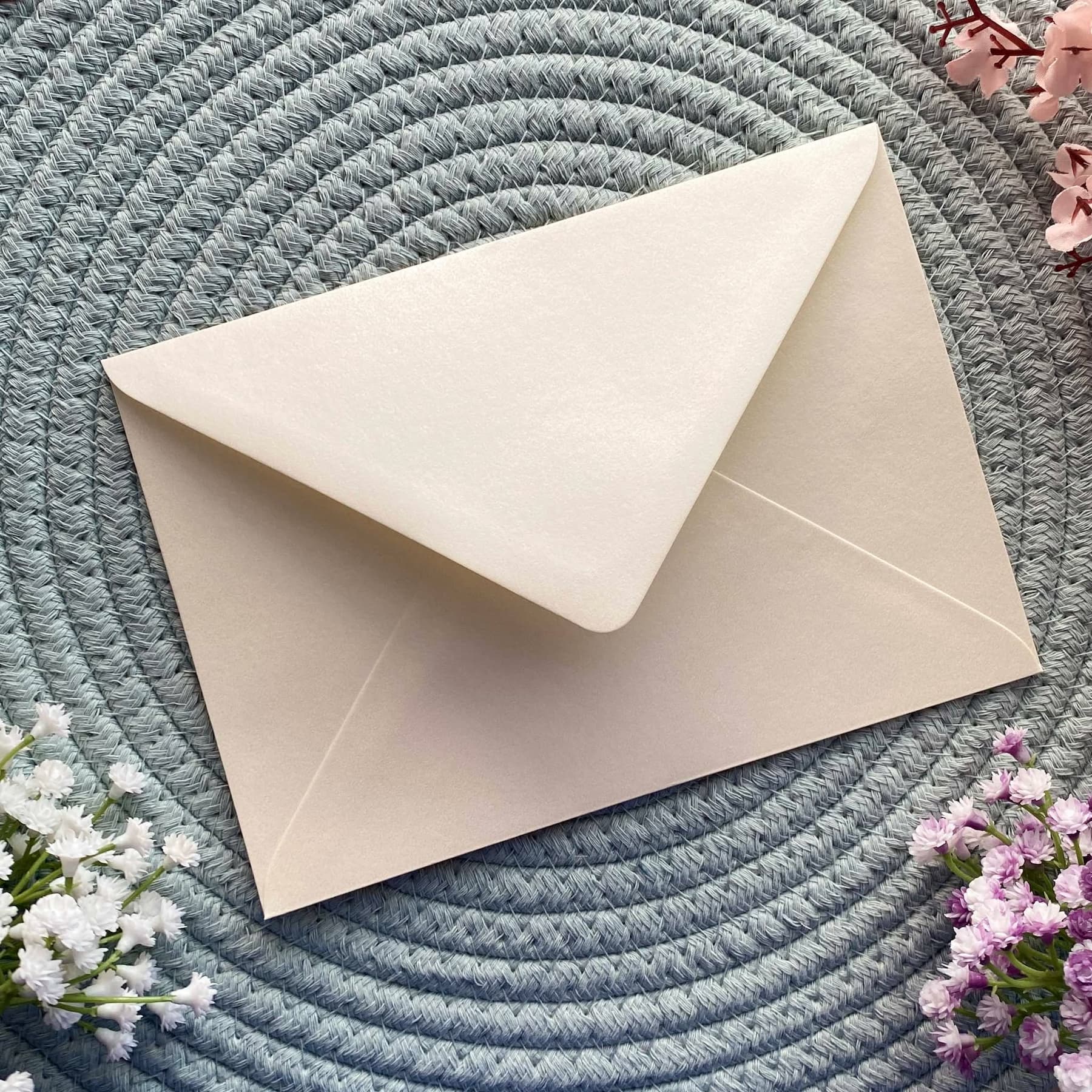 Plic ivory sidefat (crem sidef) B6 (12.5×17.5cm) din carton de 120 gr/mp ideal pentru invitații de nuntă sau botez elegante sau papetărie premium.