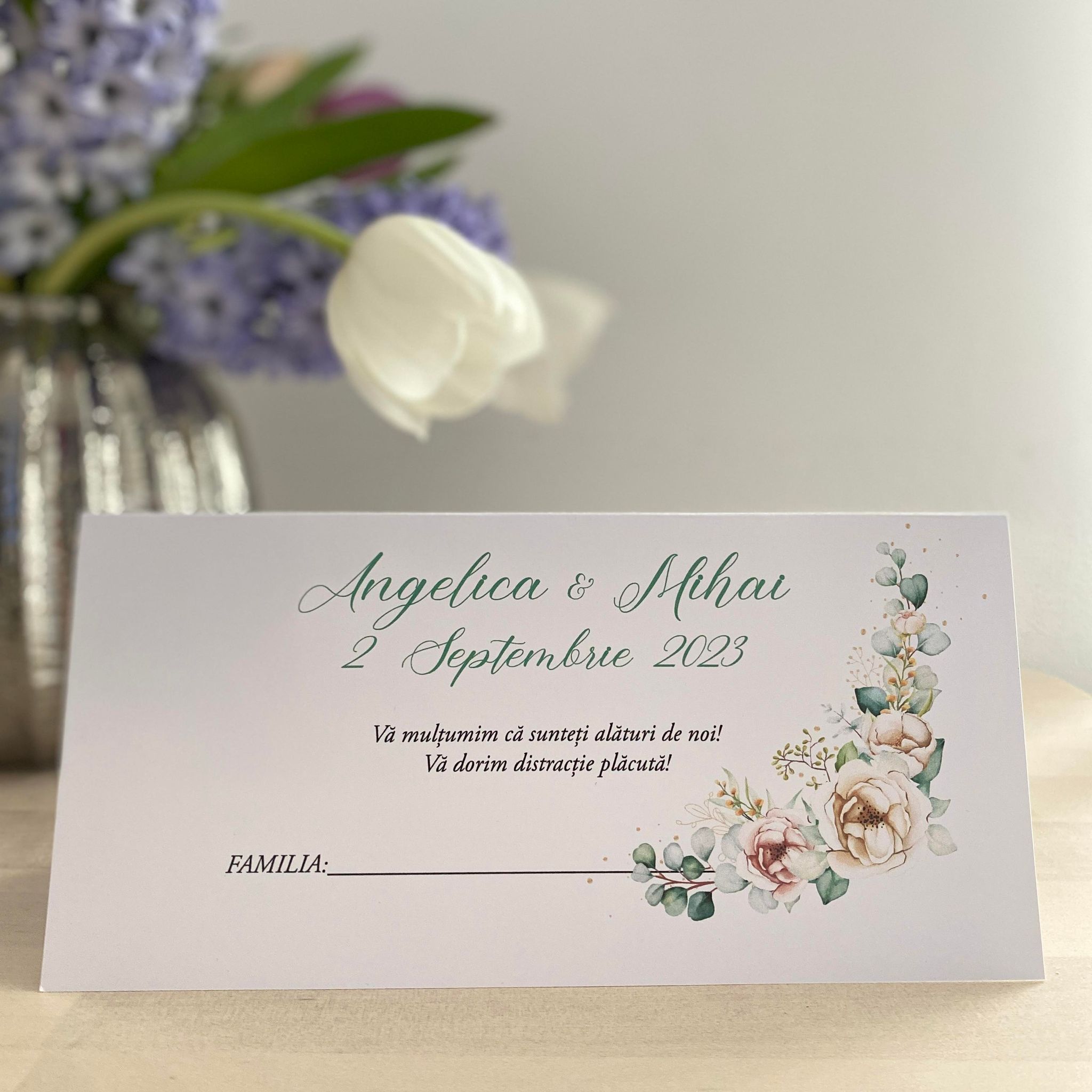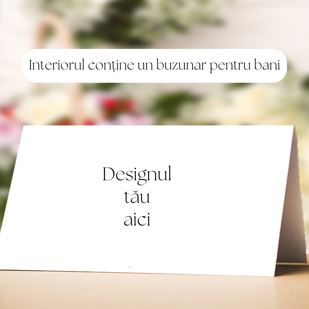 Placecardul poate fi folosit si ca plic de bani (plic de dar), daca se selecteaza opțiunea cu buzunar interior.